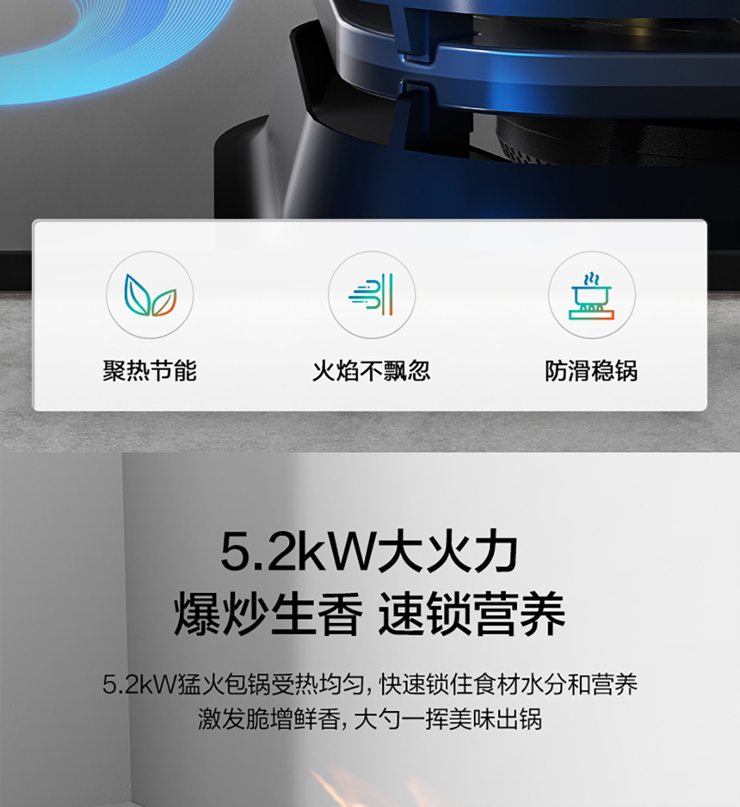 5.2kW聚能猛焰,舒适烹炒不灼热